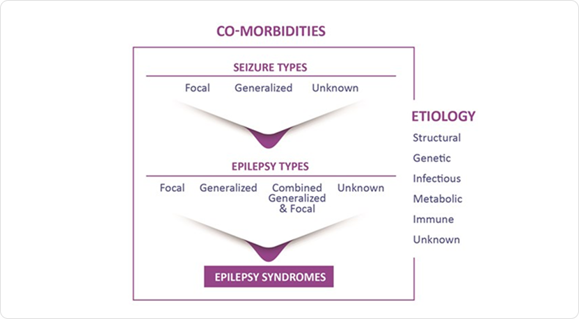 Classification of epilepsy is made using a multi-level classification framework, involving classification at three levels - the seizure type, epilepsy type, and epilepsy syndrome. The etiology of the epilepsy should be considered from the start as the information is important for classification and consequently for the treatment decisions. Seizures are classified by onset as either focal, generalized, unknown or unclassified.4