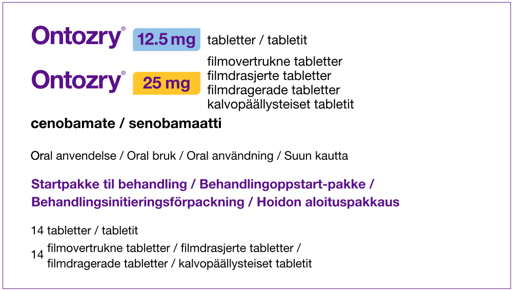 Ontozry® (cenobamat) 12,5 mg odragerad tablett samt 25 mg, 50 mg, 100 mg, 150 mg och 200 mg filmdragerade tabletter. Rx F. ATC-kod: N03AX25 - antiepileptika, övriga antiepileptika. Indikation: Ontozry är indicerat som tilläggsbehandling av fokala anfall, med eller utan sekundär generalisering hos vuxna patienter med epilepsi, som inte kontrollerats tillräckligt trots tidigare behandling med minst två antiepileptika. Kontraindikationer: Överkänslighet mot den aktiva substansen eller mot något hjälpämne, ärftligt kort QT-syndrom. Varningar: Patienter ska instrueras att uppsöka läkare om tecken på självmordstankar/självmordsbeteende uppstår, samt om tecken och symptom på läkemedelsreaktion med eosinofili och systemiska symtom (DRESS) inträffar. Innehåller laktos. Cenobamat kan minska exponeringen av substanser som metaboliseras via CYP3A4, CYP2B6 samt öka exponeringen av substanser som metaboliseras via CYP2C19. Cenobamat rekommenderas inte till fertila kvinnor som inte använder preventivmedel eller vid amning. MAH: Angelini Pharma S.p.A. Lokal kontakt: Angelini Pharma Nordics, nordic.medinfo@angelinipharma.com. Datum för senaste översyn av SPC: 2/2025. För pris och ytterligare information, se www.fass.se.