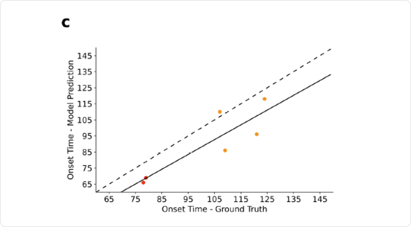 To test the model's accuracy, it was first validated against synthetic data. The Bayesian model accurately predicts seizure onset times in synthetic data (Fig. 2), demonstrating its potential for improved identification of EZ and PZ.1