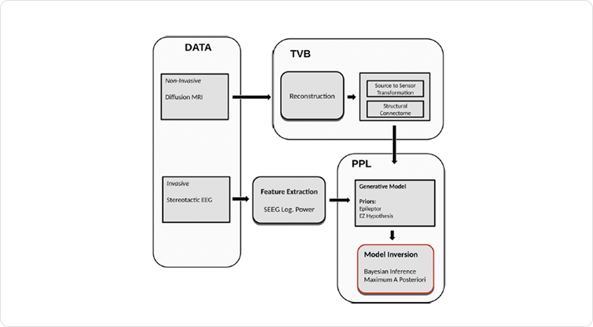 Harnessing the power of individual patient data – seizure patterns, brain anatomy, and clinical expertise – this Bayesian model creates a personalized "virtual brain" alowing clinicians to visualize seizures spread in focal epilepy.